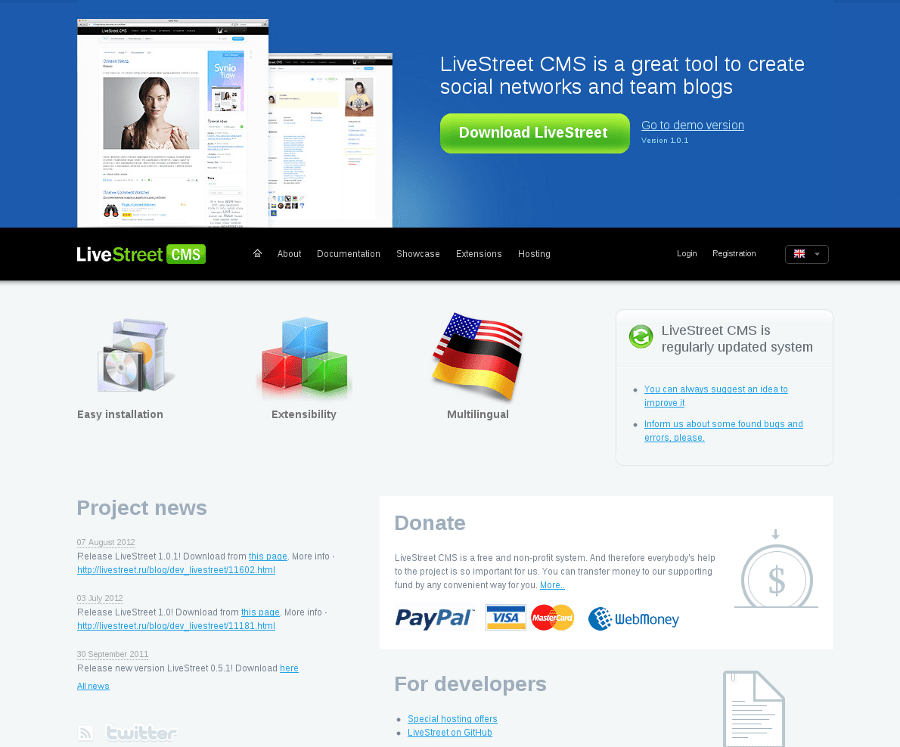 LiveStreet CMS est un CMS russe qui vous permet de créer des réseaux sociaux et des blogs d’équipe rapidement et facilement.