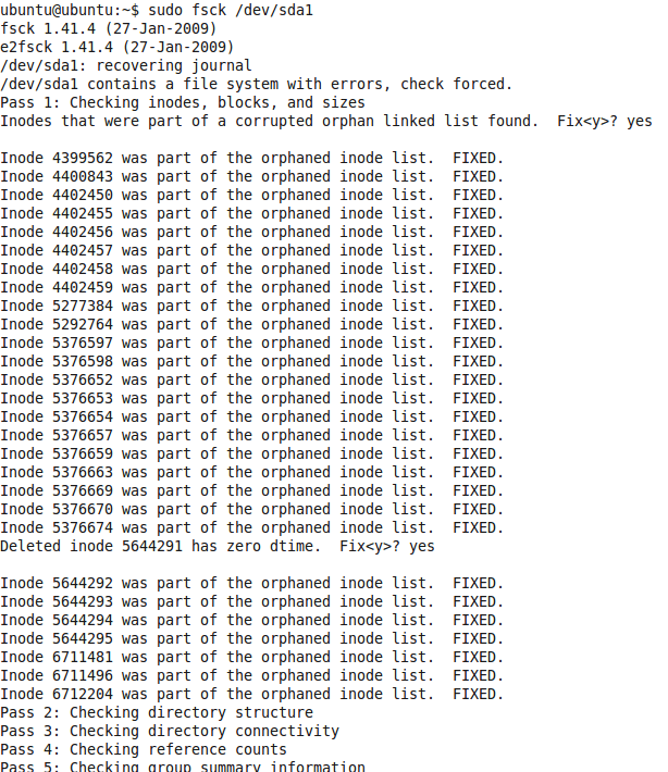 quand je rentre la commende « sudo fsck /dev/sda1 » sa fais rien normal ?