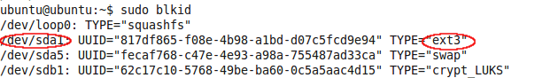 Vous devez maintenant savoir la bonne partition à rebotter (pour moi c’est le sda1), mais attention à ne pas vous trompez surtout si vous avez beaucoup de partitions.
